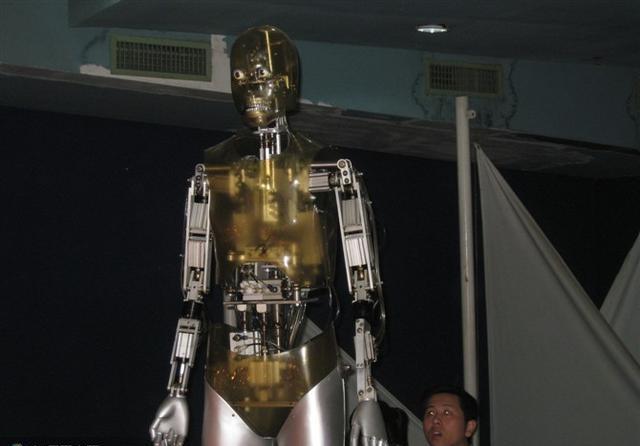最初我们国内最初设计的机器人是长这样的,这个机器人一眼看去内部各种器官网络枢纽看的一清二楚,那是在2007年一个工业展会上面展出来的一组机器人组合,是否有一种没有穿上衣服的哥们一样。
