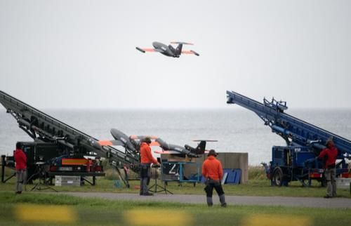 欧洲空客的工作人员在德国北部潘克的德国国防军训练区,发射了一组无人机