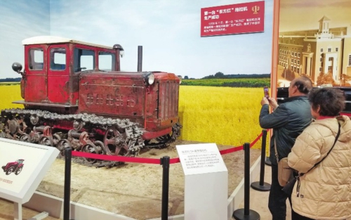成就展上,一台当年生产的“东方红”54型履带式拖拉机让人们回忆起那段激情燃烧的岁月。中国经济导报记者刘宝亮/摄