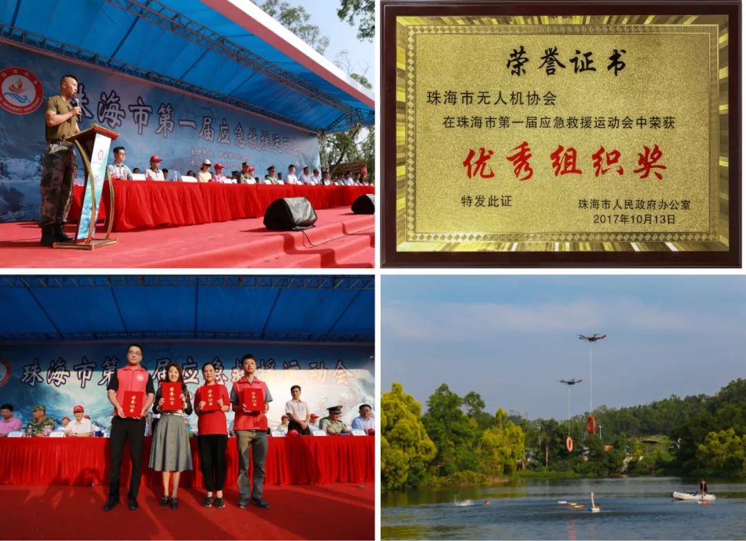 2017年10月13日, 珠海市第一届应急救援运动会于珠海农科中心举办,协会组织部分会员企业,为领导和参赛队员展示出新时代背景下的无人科技应急救援手段,珠海市副市长史明锋等领导莅临现场观摩。协会荣获市政府办颁发的 “优秀组织奖”,副会长单位广州鼎飞、珠海紫燕荣获“优秀表演奖”。
