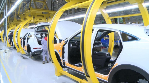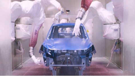 五大工艺车间共拥有超过1000台智能机器人,关键工序100%自动化,100%全时在线检测;3米多高的六轴机器人抓起钢板完成冲压,全程不需要人工;工人不再手提沉重的焊枪、身穿厚厚的防护服,生产线上的机器人全程代劳……