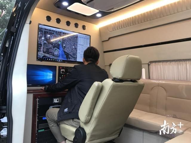 赛事现场,在中山市公安局现场安保指挥部,两个若大的屏幕引入眼帘,分别是无人机监视雷达系统以及巡逻机器人管理系统。