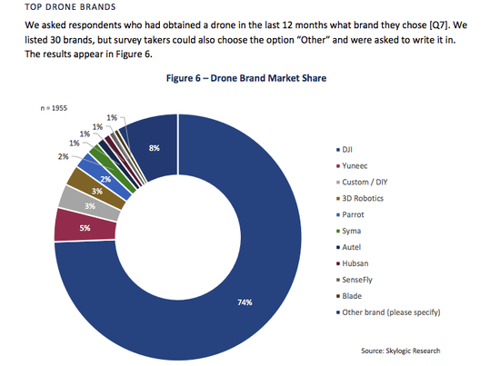 2018年消费级无人机市场份额 数据:Skylogic Research