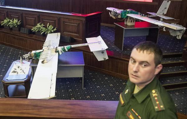 资料图片:俄国防部展示此前在叙利亚俘获的外国制无人机。(俄国防部网站)