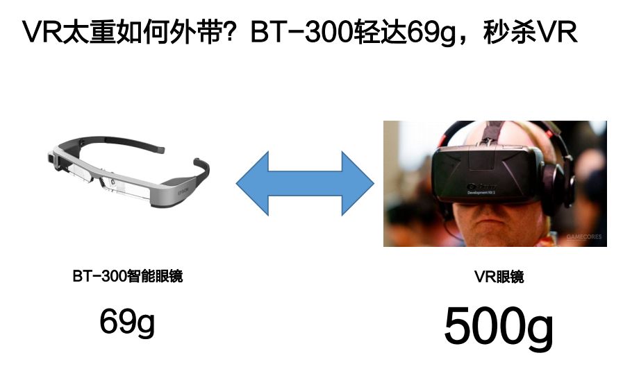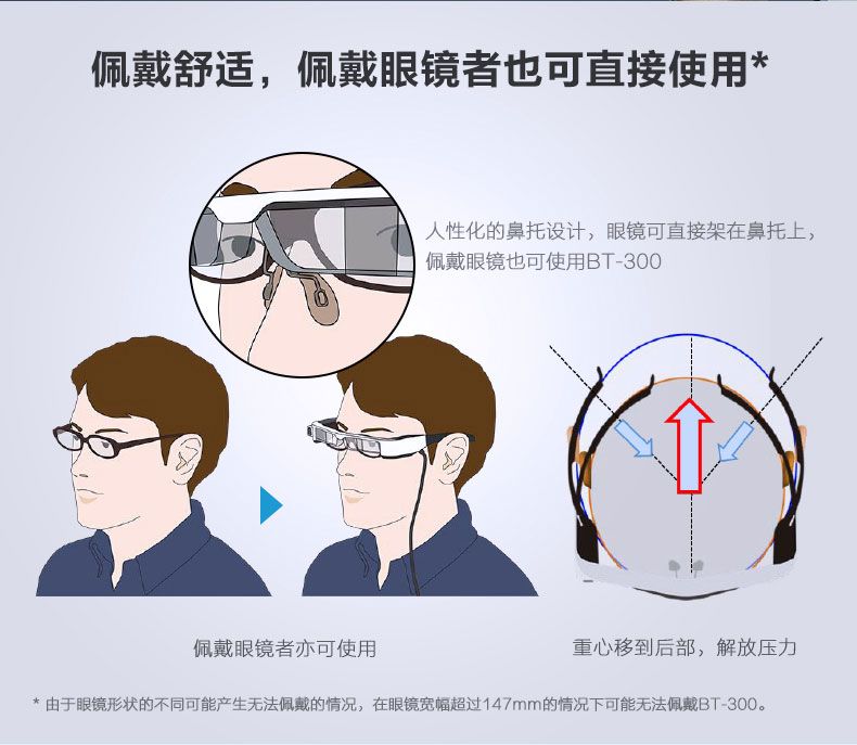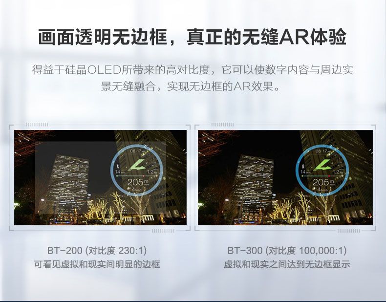 同时,无人机飞行眼镜爱普生BT-300 为用户带来超强的沉浸感。其采用爱普生自主研发的硅晶OLED 显示技术,具有1,280X720的分辨率,同时拥有100,000:1的色彩对比度,并配备遮光板。在强光环境下进行无人机头显竞速操控时,显示内容依旧清晰可见,充分确保第一人称视角飞行体验的品质。玩儿穿越机的小伙伴们一定对FPV眼镜不陌生,其第一人称的沉浸式体验确实炫酷。以及大疆本身也出了一款Goggles飞行眼镜。但是这类设备往往有着较大的体积,像个头盔或者说是巨型眼罩,真的让人一个头两个大。而爱普生BT-300可以真正意义上称之为无人机飞行眼镜,因为它只有区区69克,就是一副眼镜的重量!