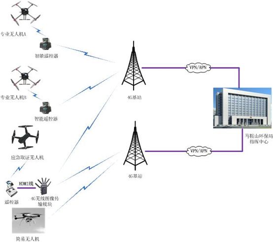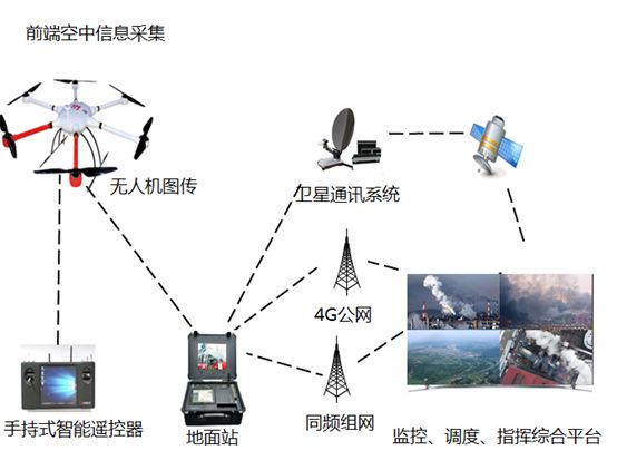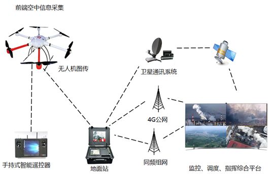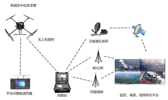 环保单位通过建设慧明捷无人机空地联动图传监察系统,采用慧明捷先进的组网技术、传输技术,调制技术等,扩大无人机的控制和图传距离,拓展无人机的作业范围,在遇到突发性的水域环境污染应急事件中,无人机可执行复杂条件下污染物监测,对难以到达的场地进行环保监察,环保执法人员利用慧明捷无人机快速飞到污染事故的上空,通过无人机搭载的高清变焦摄像云台进行巡查执法取证,通过无人机高空拍摄的画面可直观辨别污染源、排污口、可见漂浮物等,同时污染物监测数据和污染现场画面实时回传到指挥中心,为环境应急执法决策提供依据。