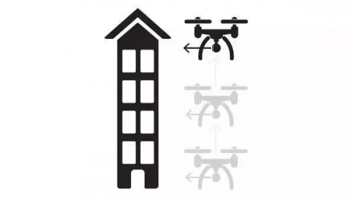 垂直上下飞行,有种坐电梯的感觉,垂直向上有一种向上的力量感,适合逆光拍摄高大的建筑。飞行器垂直上升,镜头俯拍,这种快速拉升的动作镜头从局部迅速扩张至大全景获得最佳构图。