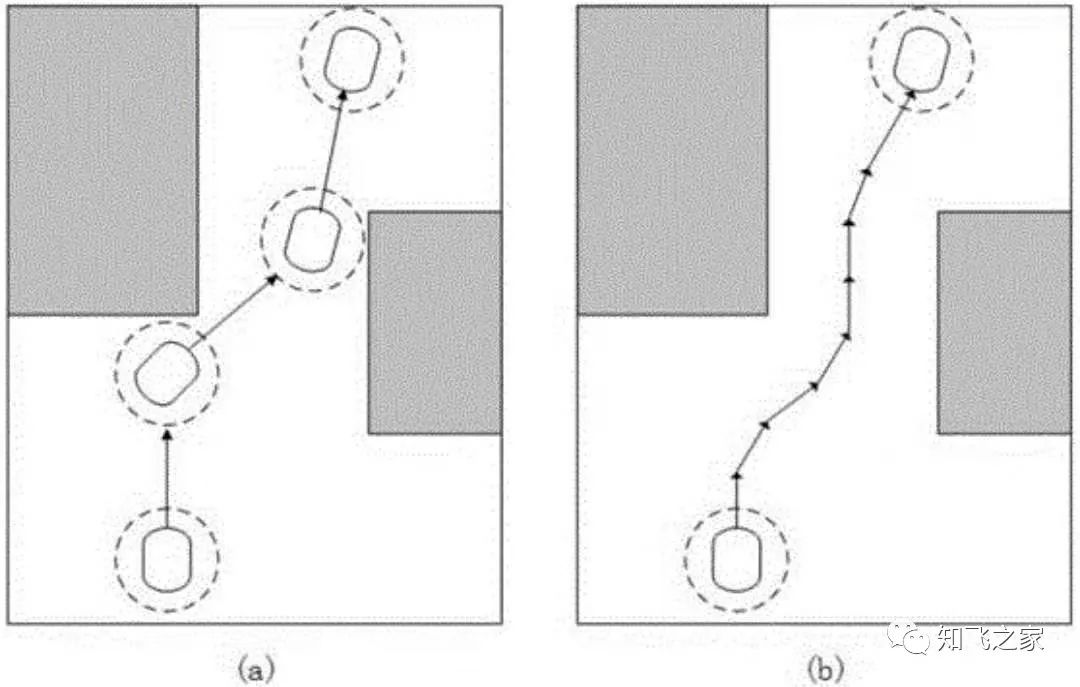 离散型方法是指通过对计划航路点的调整,在尽可能保持原有航线的基础上得到最大可能的无冲突飞行路线。大部分研究者采用基于遗传算法或粒子群算法寻优,得到有利航线(求解速度快、省油等约束下)。使用离散型解脱方法可以满足无人机正常飞行队安全距离的要求,且能够很好地处理少量航空器间的飞行冲突,但在解决大量航空器间的飞行矛盾时显露弊端。