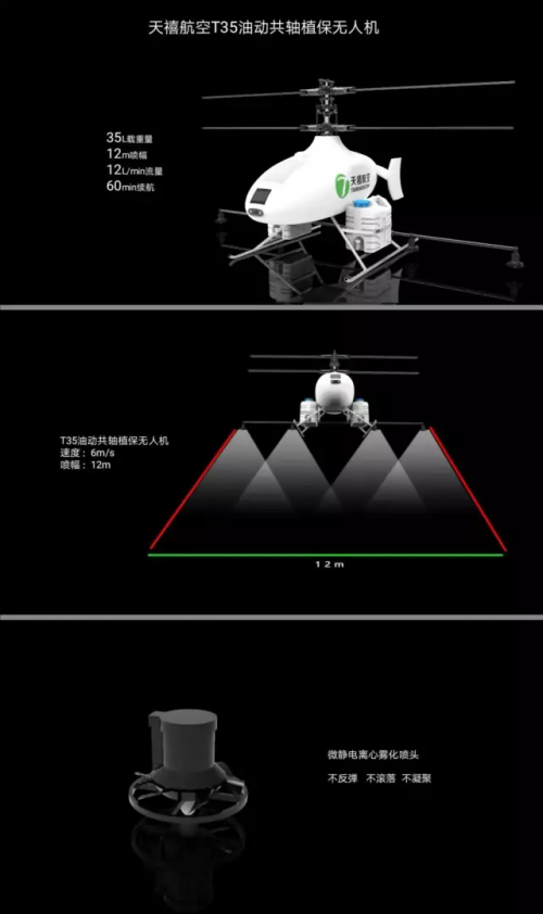 第一款为T35植保无人机,该机具有35公斤最大载荷,预售价为45999,该机具有多项技术亮点。