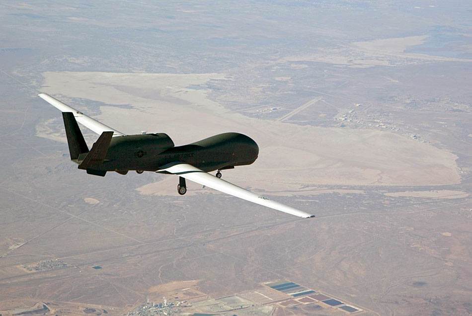 资料显示,RQ-4“全球鹰”无人侦察机翼展35.4米,长14.5米,高4.6米,重约10吨,续航时间长达38至42小时,巡航半径为3000公里,其监视范围可覆盖整个朝鲜半岛。RQ-4可在2万米高空通过雷达和红外线探测装备,识别出地面上直径仅为0.3米的物体。