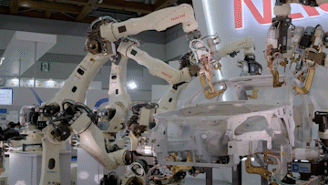 那智不二越展示了汽车生产线上自动化焊接的场景。