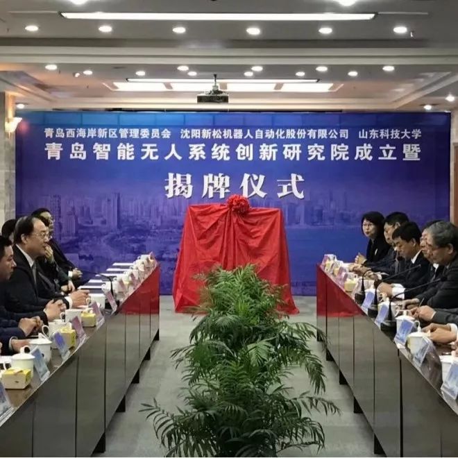 12月25日,青岛智能无人系统创新研究院在新区成立,沈阳新松机器人自动化股份有限公司总裁曲道奎、青岛西海岸新区管委主任、区长周安、山东科技大学党委书记罗公利共同为研究院揭牌。