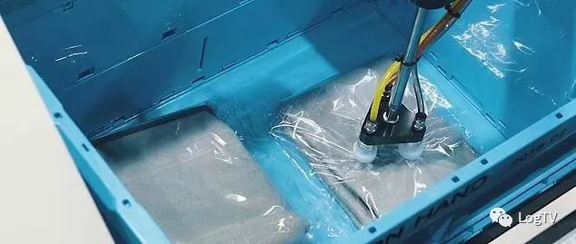 Mujin在优衣库东京仓库中应用了一套双臂机器人,可以通过视觉系统扫描识别和记录每个订单的内容,并利用吸盘夹具对商品进行拣选,机器人能娴熟地对服装进行分拣打包,丝毫不对其造成损伤,即使是相关的纸质出库单也能毫发无损地轻松吸取。视觉系统还能进行自动检查,防止商品误装误运。