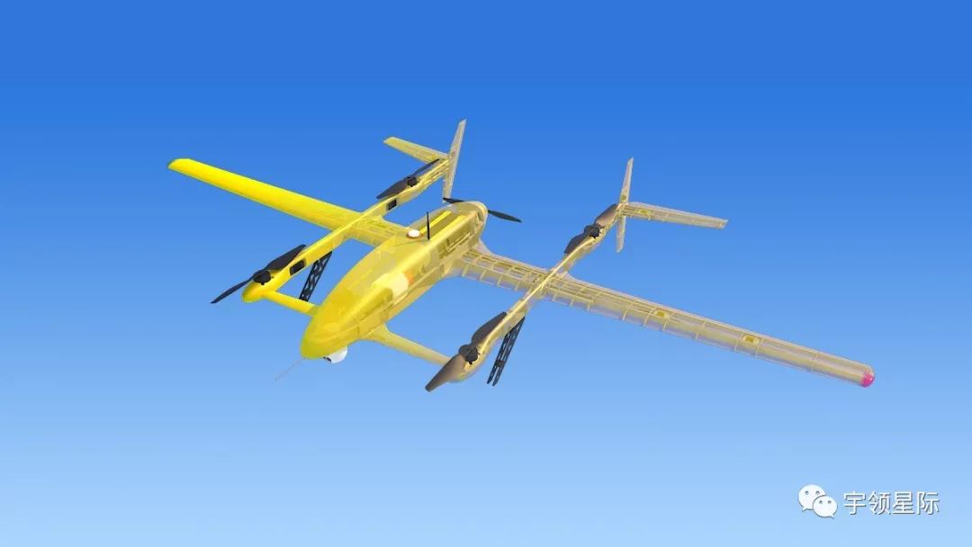 宇领星际研发的星光-60垂直起降无人机,采用开式尾撑三翼面布局,机体和子系统均采用模块化可配置的设计,动力方面可采用汽油、重油动力推进,最大航时超过20小时;也可采用锂电池电动推进,航时3小时。飞机最大载重能力为15公斤。主要面向大范围/长航时/大载重的任务应用。