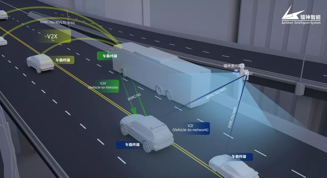 镭神激光雷达车路协同路侧感知系统,将多线激光雷达架设于道路出入口、大型十字路口等,同时可配合摄像头、毫米波雷达等多种传感器,将路面信息包括来往行人、物体全部纳入V2X的数据网络中,再通过交通控制中心服务器向周边或者更远距离的车辆进行广播,同时为车辆提供路口通行信息及交通安全信息提示,包括红灯提醒、驾驶速度提醒、盲区提醒等等。
