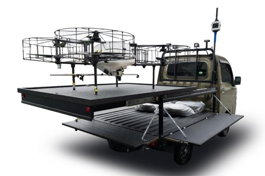 无人机网(www.youuav.com)援引外媒的消息说,1个多月前在日本举行的“第六届国际未来农业博览会”上,日本汽车制造商大发(Daihatsu)工业有限公司和日本农业无人机制造商nileworks有限公司联手展出农业无人机生产装卸起降车辆。该轻型卡车可以携带农业无人机进入农田,当无人机作业完毕后可以降落在卡车平台上。大大减少工作量,从而提高无人机喷洒效率。