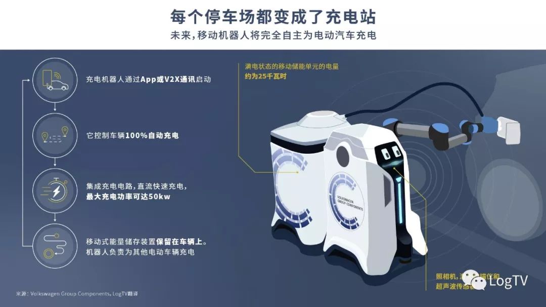 12月26日,大众汽车(Volkswagen)集团推出了一种新颖的充电概念,基于移动机器人技术为电动汽车自动充电,该方案旨在让每个停车位都可以成为充电点。