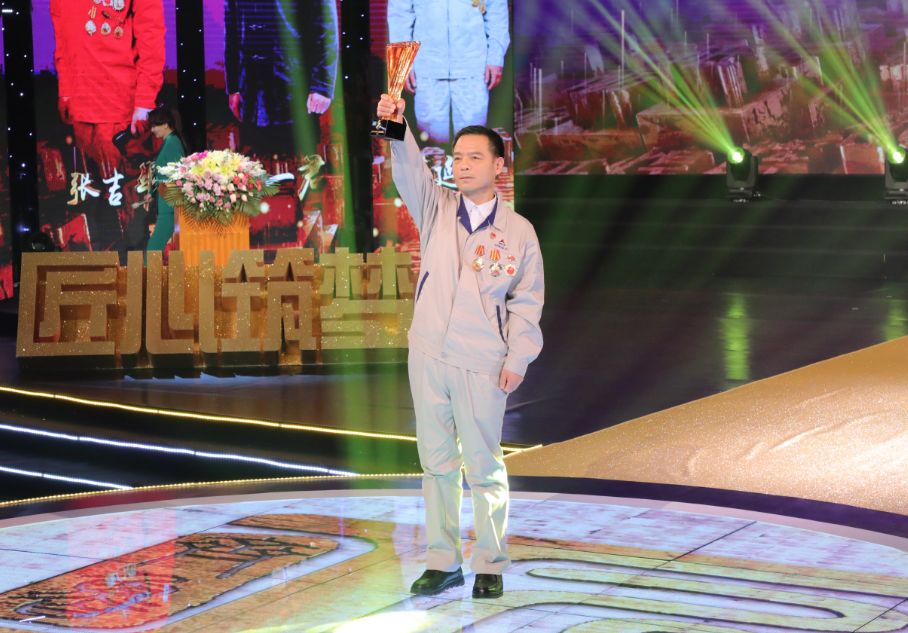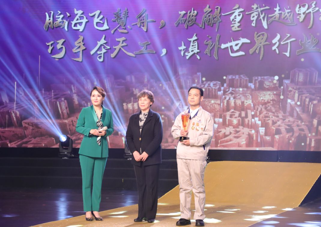 颁奖典礼上,分别播放了邱峰等“齐鲁大工匠”的视频短片,他们勤于钻研、勇于创新的感人事迹深深地打动了现场观众。中国机械工业联合会执行副会长于清笈为邱峰颁发了“齐鲁大工匠”奖杯。