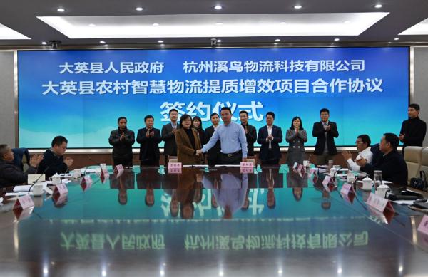 12月31日,四川省农村智慧物流提质增效项目签约仪式在成都举行。遂宁市大英县、蓬溪县,泸州市叙永县,凉山州西昌市人民政府以及15个市(州)交通运输局与杭州溪鸟物流科技有限公司(菜鸟乡村)现场签约,将携手开展农村数字物流网络建设。