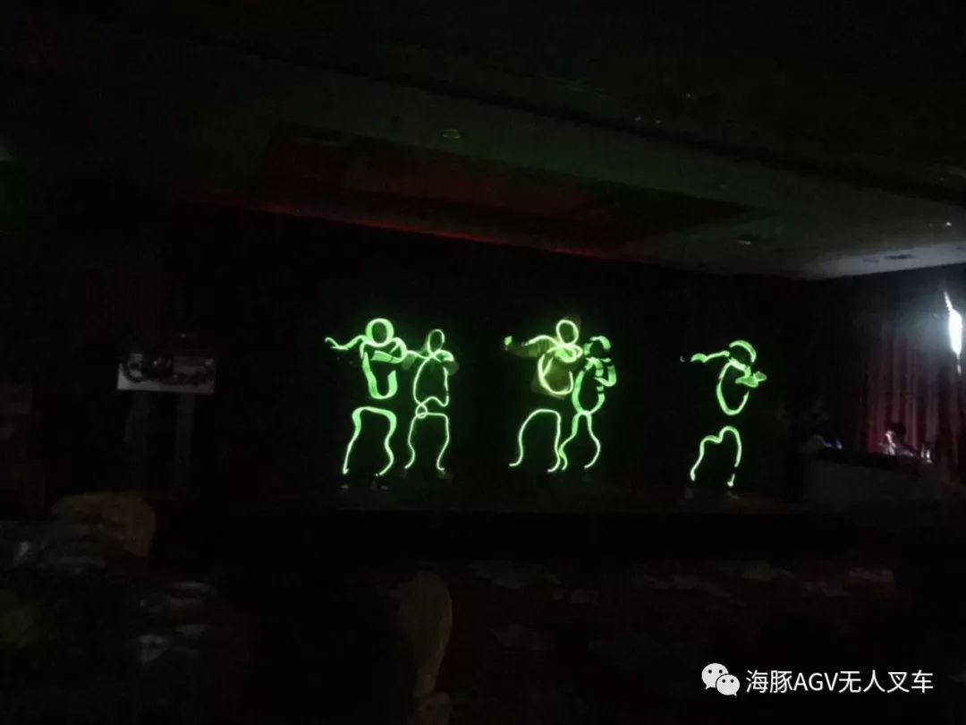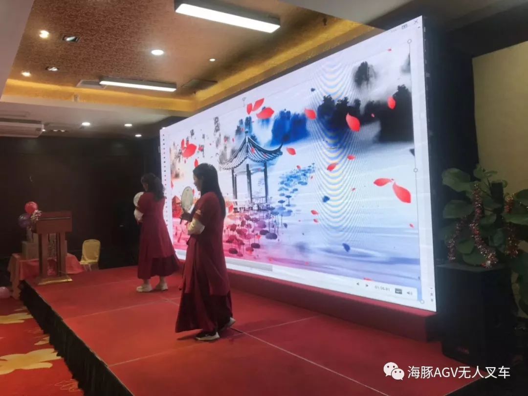 节目中间中间还穿插着优秀员工颁奖等环节,今年比去年多了几个奖项,有最佳贡献奖、最佳进步奖、最佳勤奋奖、最佳创意奖等,看着海豚小伙伴们一个个上台领奖时脸上洋溢着激动与兴奋,内心的喜悦已经掩藏不住了呢!歌声优美,舞姿动人,相声逗人,在这欢闹的气氛中,海豚之星年会节目表演结束了,各位,是不是没有尽兴呢!伴随着一首简短的音乐,大屏幕上播放着海豚之星AGV机器人2019年的发展历程,视频结束,大家意犹未尽。这时,姚总上台发表演讲,来总结2019年海豚之星的经历与收获,哦,对了,年会当天正好是姚总好兄弟的生日呢,就是这么的巧,大屏幕上已经切换成了生日快乐的图片,随着生日歌的响起,管理中心的小姐姐从后台慢慢地端着蛋糕走到了台前,姚总亲自点上了蜡烛,让他的好兄弟吹灭,全场满满的幸福与感动。