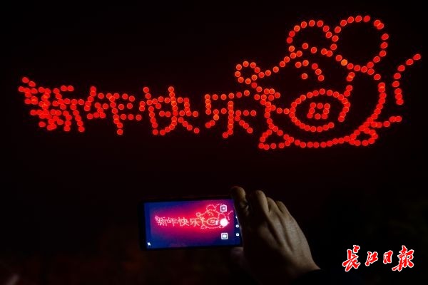 集齐400架无人机能做什么?召唤“2020”啊!12月31日晚,东湖灯会开幕式现场,当第一队200架无人机以“灯塔”造型升空时,全场立即响起阵阵惊呼。