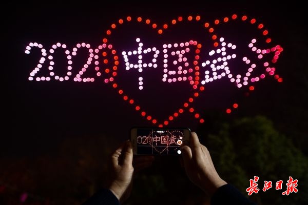 2020第六届武汉东湖灯会开幕式无人机表演 记者詹松 摄