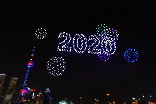新华社上海1月2日电(记者许晓青)2019年的最后一晚,2020架无人机组成矩阵在上海黄浦江畔起飞,上演了一幕“灯光秀”,现场组成了“2020”及汉字“追梦”等造型,吸引中外观众。