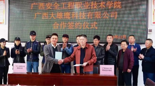2019年12月31日上午,一份名为“应急安防无人机应用技术培训基地战略合作框架协议书”的文件正式签定。作为无人机行业区内的领军人物,广西大雄鹰科技有限公司与广西安全工程职业技术学院的强强联合让业界对双方在新的一年里的发展充满了期待。