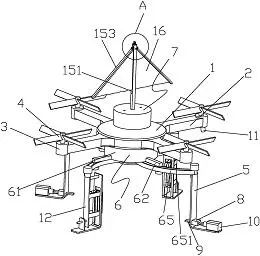 无人机网数据中心援引国家知识产权局的专利数据称,在这份发明专利中,描述了一种防倾倒小型运载无人机,包括主控机舱,主控机舱的四周依次均布有多根机臂,机臂的外侧端固定设有伺服电机,伺服电机的上侧输出轴上安装有螺旋叶片,主控机舱下方依次设有四根支腿,主控机舱与四根支腿之间设有能控制四根支腿收缩或张开的调节机构,主控机舱顶部设有能平衡无人机飞行姿态的平衡机构。