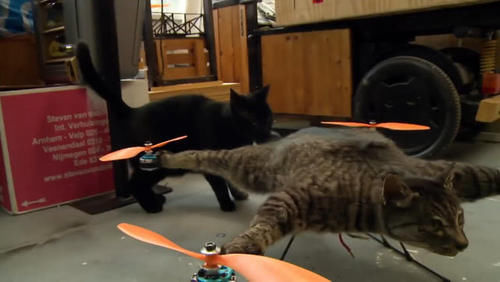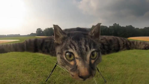 当老外打开无人机的箱子的时候,一个特殊的无人机被拿了出来,他居然将猫咪固定在了无人机上,而且还将其四肢,绑在无人机的四个机翼上,这样的姿势让我不厚道的笑了,当启动的那一刻,猫咪的表情非常呆滞。