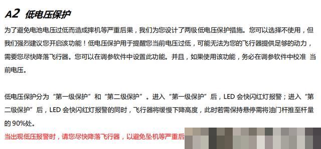 NAZA飞控的低电量保护说明,提到了90%油门可以悬停