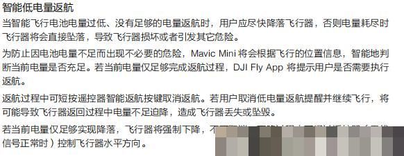 商业无人机都有低电压报警功能。在早期飞控中,也都已经内置了这些功能,返航的百分比,低电量的保护模式都可以自助设定。一般无人机低压保护有两个级别,第一级是自动返航,第二级为强制降低高度。还有些无人机增加了部分功能。比如御mini无人机会根据飞机飞行距离,判断飞机的返航时间,提前报警。有时有的朋友在飞行时忽视了电压情况,没有及时返航,导致触发低电量返航。有些朋友对无人机低压报警并不是非常熟悉,在低电压报警,强制降低高度的时候手足无措。
