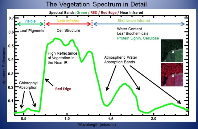 下面的植被光谱图像包含有关反射率和植被波段的详细信息和说明。