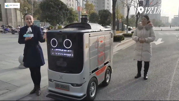中国移动联合京东共同探索开发的5G+人工智能无人物流配送车,前方是由多组传感器及摄像系统组成,用于行驶的数据采集。侧边、后边也有多组传感器及摄像头,摄像头用来实现拍摄寄送人影像及人脸识别等功能。