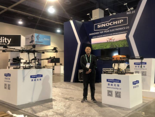 深圳鼎峰无限携多款农用植保机亮相展会,公司也是多年展会的老朋友了而且每年还会参加美国无人系统展,应该说是国内活跃度较高的植保无人机厂家。