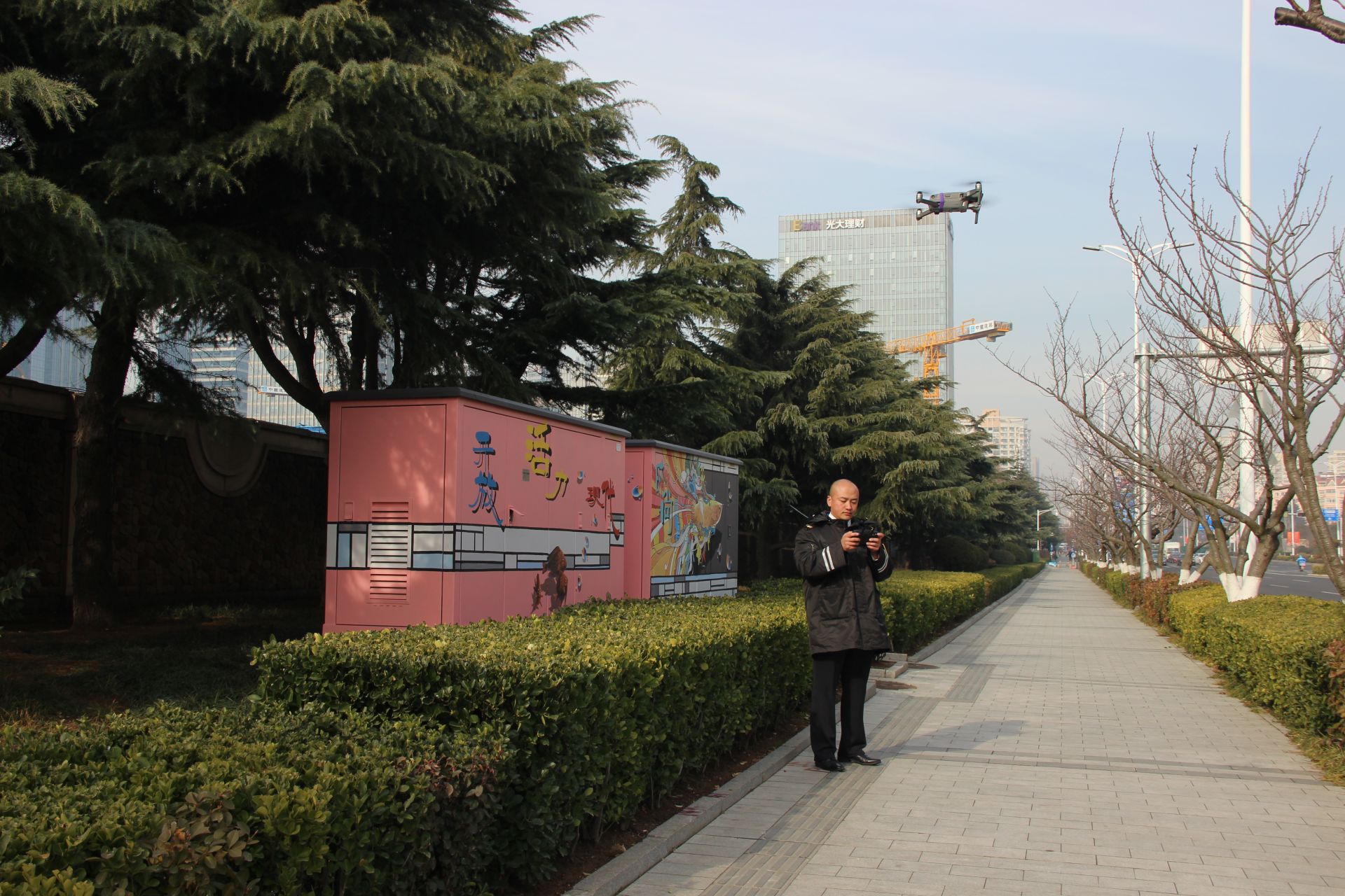 工作人员操作无人机