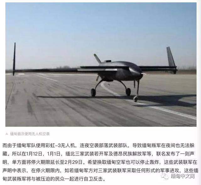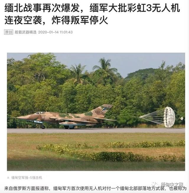 一篇外国媒体报道声称:缅甸政府军首次使用无人机打击缅甸地方武装,缅甸空军在1月12日晚间,使用8架察打一体无人机空袭了若开武装。