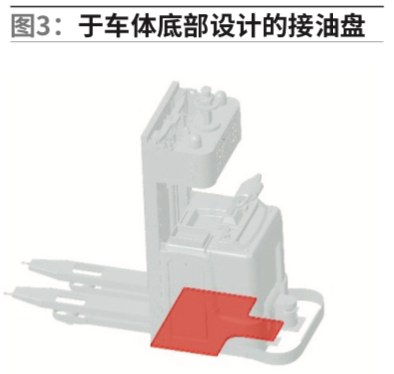 在车体底部设计接油盘,接油盘内设计吸油纸,最大程度地防止因内部产生的润滑油脂溢出车体,定期更换内部吸油纸最大程度地降低了油脂泄露的可能性。如图3。