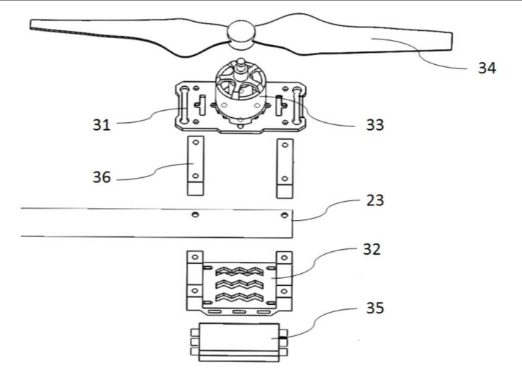 控制机构设置在机臂机构上,其用于与遥控装置进行实时通讯并对升力生成机构进行控制;升力生成机构连接在机臂机构上,其用于产生飞行动力。