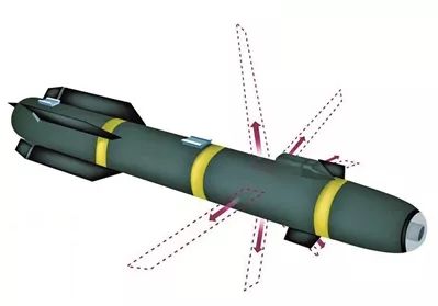 AGM-114 R9X“地狱火”空对地导弹示意图。虚线部分为打开后的折叠刀刃