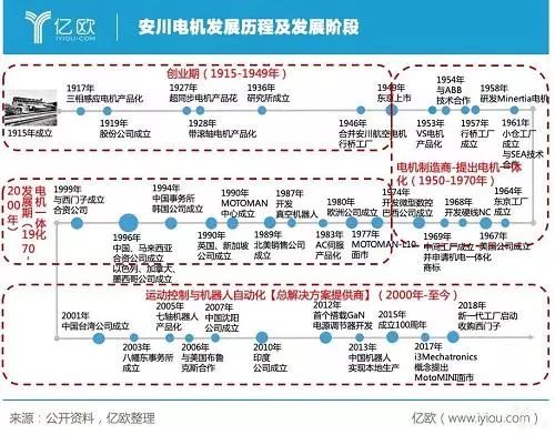 1958年安川电机开发出商业化直流伺服电机Minertia, Minertia完全由电流电压控制,可将响应速度提升至当时普通电机的100倍,打开了超高速、超精密的世界之门。1969年安川电机创造性提出机械与电子相结合的“机电一体化”概念,形成一个无人工厂,也称自动化工厂。自此,安川电机迎来新的发展转折点,更是为往后的发展指明了道路。