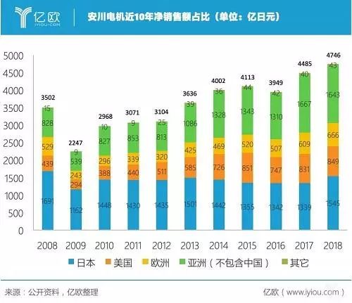 另外一点,即使不包含中国,亚洲也是其最大的海外市场,其次是美国,然后欧洲。所以,也反映出安川电机为什么海外公司分布多集中于亚洲。