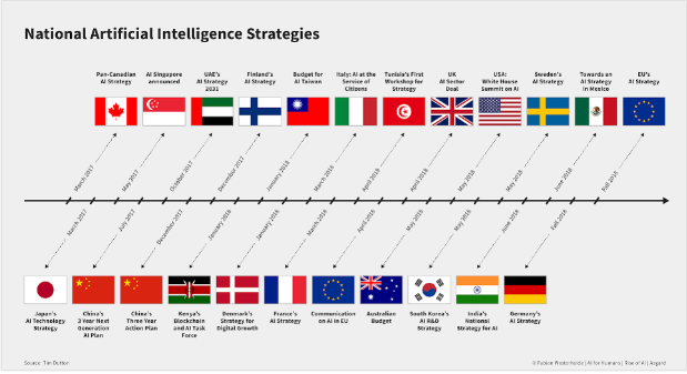 福布斯发文表示,「中国正在成为第一个全球人工智能超级大国。」「中国将庞大的数据与人才、公司、研究和资本相结合,以构建世界领先的 AI 生态系统。」2017 年,国务院发布了《人工智能发展计划》,该战略是更大的「中国制造 2025」计划的一部分,还将与新的(数字)丝绸之路相关。人工智能在这些计划中起着至关重要的作用—人工智能的目标是到 2025 年连接和升级整个中国工业,这意味着人工智能用于将生产商品和控制公司,同时平衡供需。
