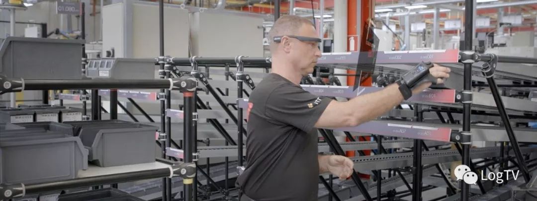 这是谷歌、Ubimax等公司一同开发的视觉分拣解决方案,拣货流程为:系统接到订单——拣货员用眼镜上的摄像头与识别系统扫描订单条码——AR快速获取货物所在位置——AR眼镜通过3D地图导航、语音指令指引拣货员到相应的货架进行拣选。在这个过程中,AR眼镜上会显示拣货员需要拣选的货物数量、货物属性、入库时间,拣货完成后,拣货员通过操作眼镜右侧支架上的触摸控制键或语音指令进行确认,如有错误,AR眼镜会及时显示并提醒。