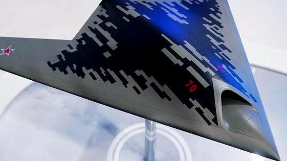 苏霍伊s - 70 Okhotnik-B 是俄罗斯最新研发的隐形重型无人机,新型无人机包含了一些第五代苏霍伊Su-57战斗机的技术。