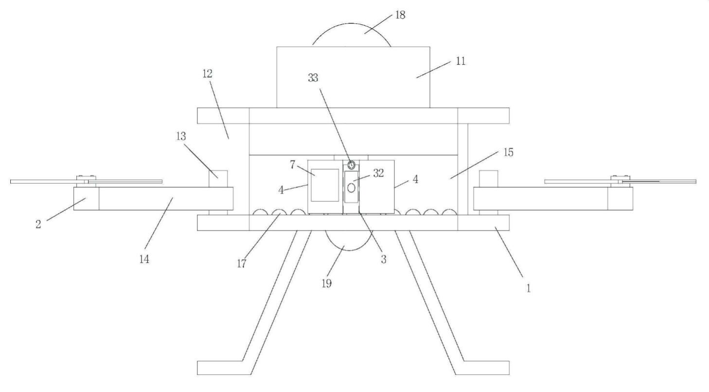 在这份发明专利中,描述了一种基于无人机的电梯导轨支架间距标记的测量装置,包括带有控制盒的无人机本体,无人机本体左右两侧均开设有槽道,槽道内前后端均垂直设置有一转动轴,转动轴上套设有一支撑臂,且支撑臂可转动地设置于转动轴上,支撑臂的尾部设置有带有电机的机翼,无人机本体开设有一甬道,甬道内设置有一方形筒体,且方形筒体在一转动电机的驱动下能在甬道内进行左右移动,方形筒体中间内部固定有一双向激光测距仪,方形筒体前端和后端均设置有一微型摄像头,方形筒体前端和后端均设置有一微型摄像头,方形筒体左右两侧均固定有一方形框体,两个方形框体内均设置有一横杆,横杆的顶端设置有一标记机构,该发明能有效减轻检验员的劳动强度,方便安装人员对超标准间距的导轨支架纠错整改。