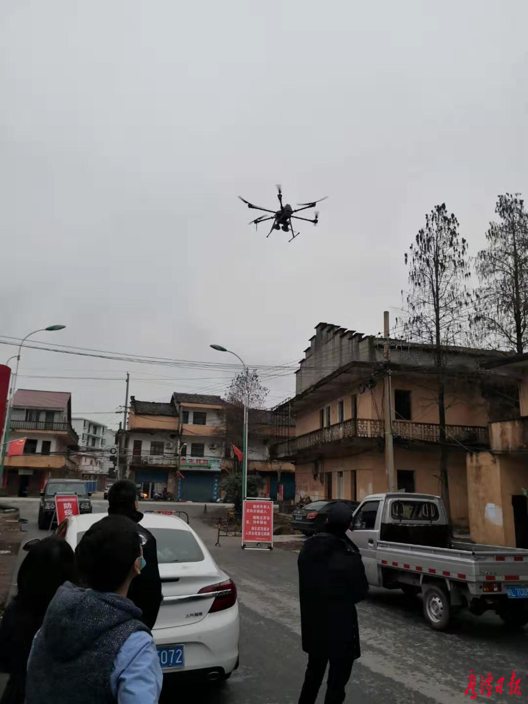 1月27日下午,随着螺旋桨发出的“嗡嗡”声,一架无人机在鹰潭高新区瑞和国际小区门口腾空而起。白露街道办事处工作人员正联合普华鹰眼科技发展有限公司技术人员利用无人机搭载喇叭的方式,向各小区内的居民宣传新型冠状病毒感染的肺炎疫情防护知识。