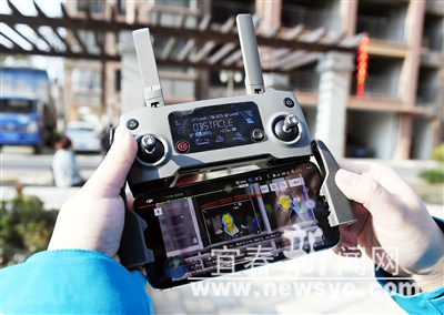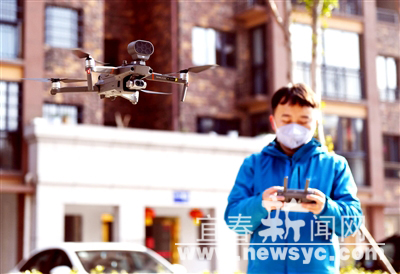 1月29日,宜春城区金辉御苑小区,易金禹使用无人机,给小区重点人员进行远程测温,开展疫情防控的日常登记和摸排工作。