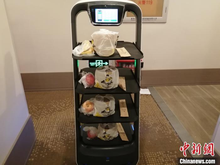 深圳市福田华富街道健康驿站1月29日落成,为滞留旅客提供临时落脚点,目前共有8名来自广州中医药大学深圳医院的医护人员值守。爱心企业捐助的5台配餐机器人2月4日正式“上岗”。每到送餐时间,医护人员将餐食依次放置在机器人的托盘上,在触摸屏上选择对应房间号,机器人就会自主追踪房间号,餐食送达后,还会用轻松愉悦的语音告知。此外,机器人还承担送药、送物工作,降低医护人员接触感染的风险。