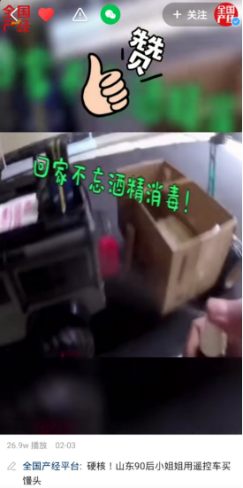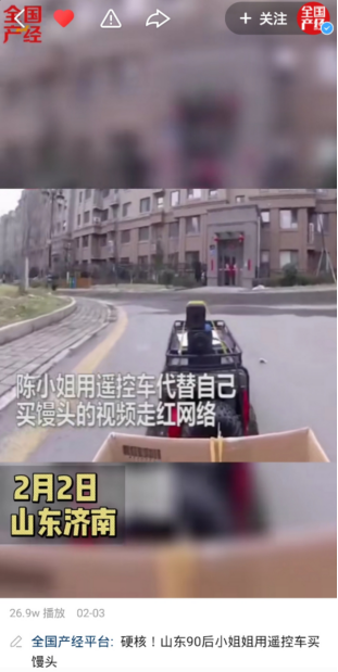 遥控车大摇大摆穿过大街小巷,买了馒头后又径直开回家。到家第一时间,小姐姐还不忘给遥控车消毒。太硬核了,堪称“教科书般防疫”。